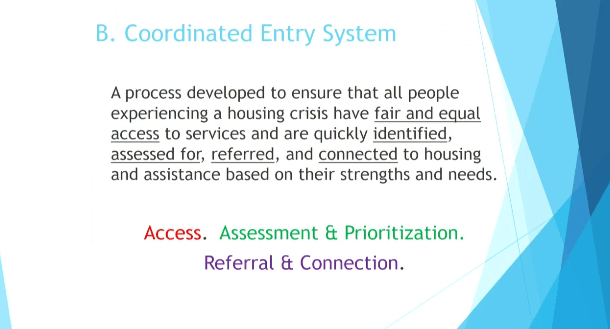 One of the key things is the Coordinated Entry system that is to make sure people have fair and equal access to services, that they are identified and referred and connected to housing based on their strengths and needs. She says they were steering the titanic to get coordinated entry into the community. Each provider had their own waitlist, their own criteria, their own ways to approach services, so if you were a person in need of housing, you had to make sure you knew everyone’s rules, that you contacted everyone, that you were on all the different lists. This was a real game-changer but it really was the city and HUD pushing some of the providers to go to the coordinated entry approach where we created the housing priority list.